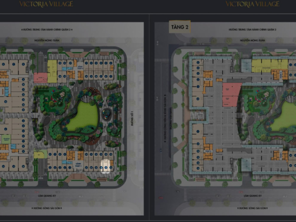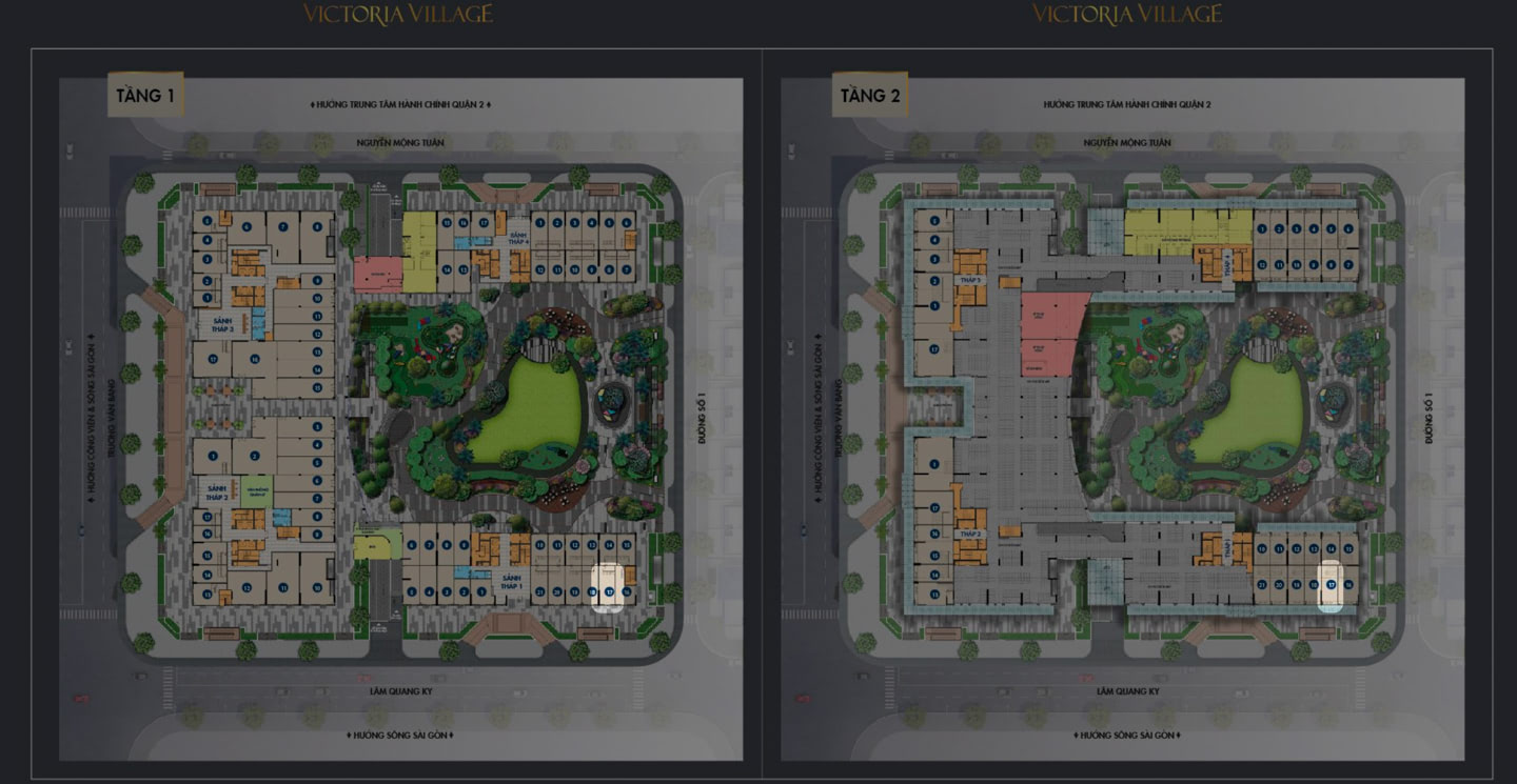 Shophouse Victoria Village mặt tiền đường Lâm Quang Ky diện tích 85m2 gồm 2 tầng tại khối đế tháp 1 căn hộ Victoria Quận 2.