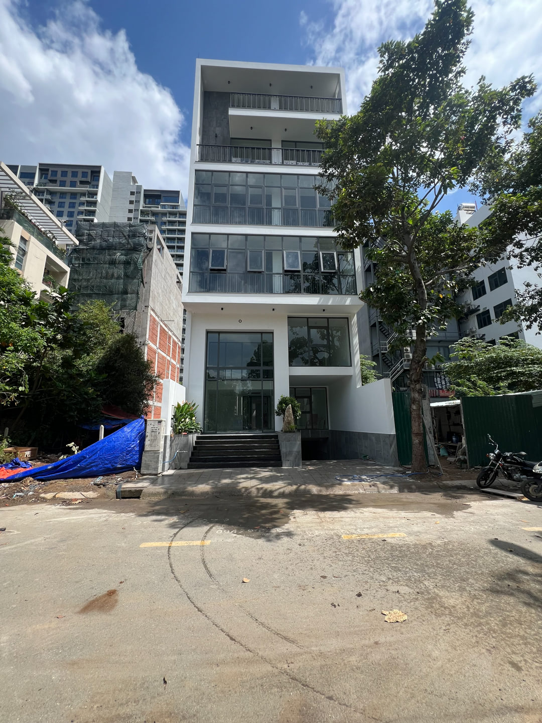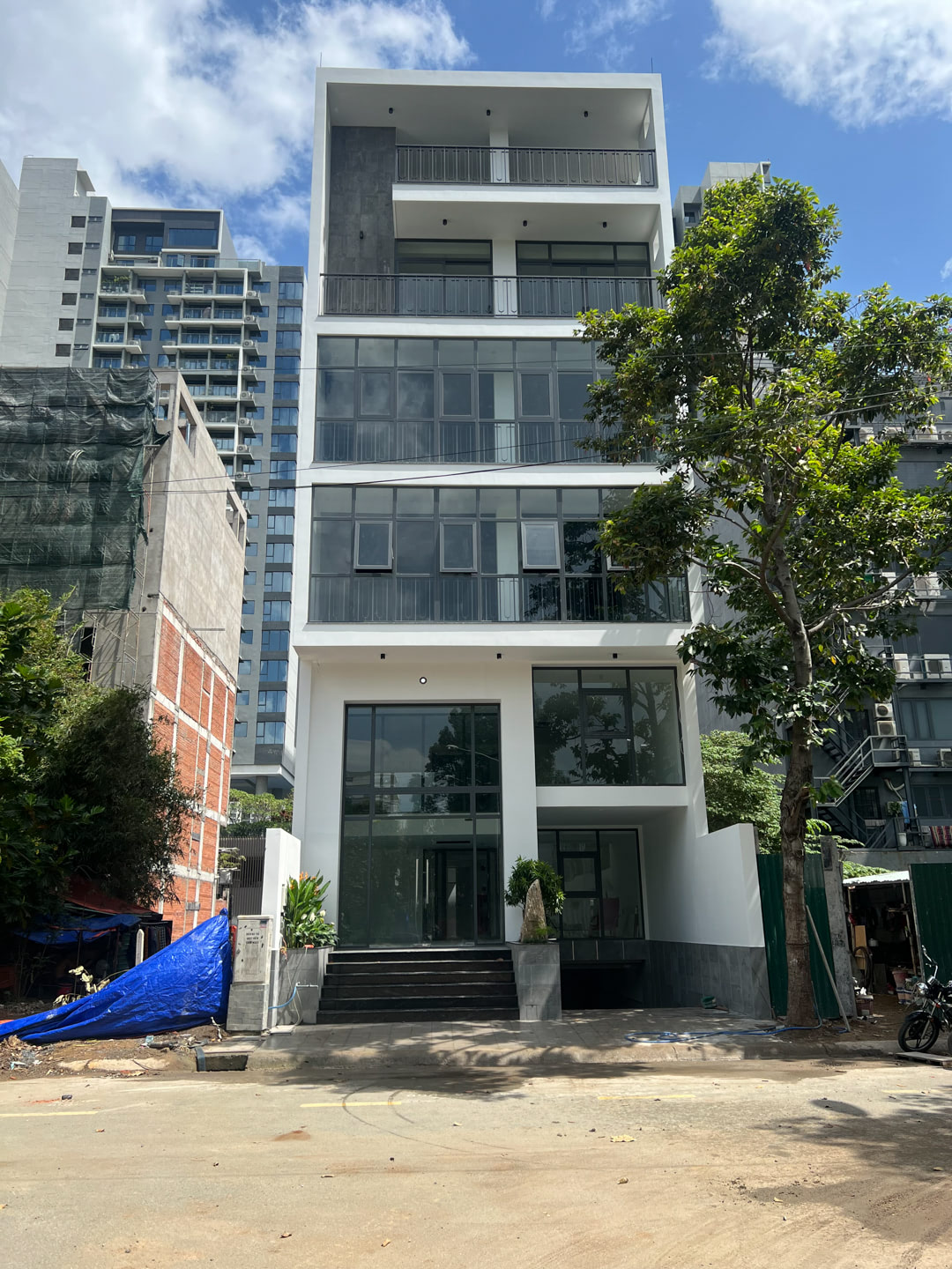 Văn phòng gồm 4 tầng bề ngang mặt tiền 8m với diện tích sử dụng mỗi sàn 150m2.
